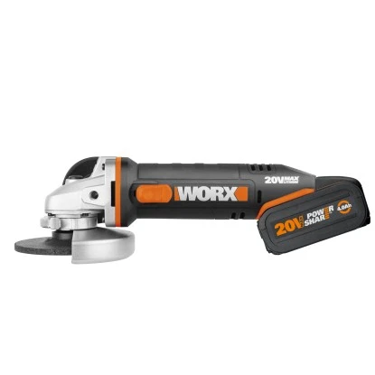 Der Akku-Winkelschleifer ist Teil der Worx PowerShare-Familie. Sowohl das im Lieferumfang enthaltene Ladegerät als auch der 20 V-Akku (4 Ah) ist daher auch mit allen anderen 20 V-Geräten aus der PowerShare-Familie kompatibel.